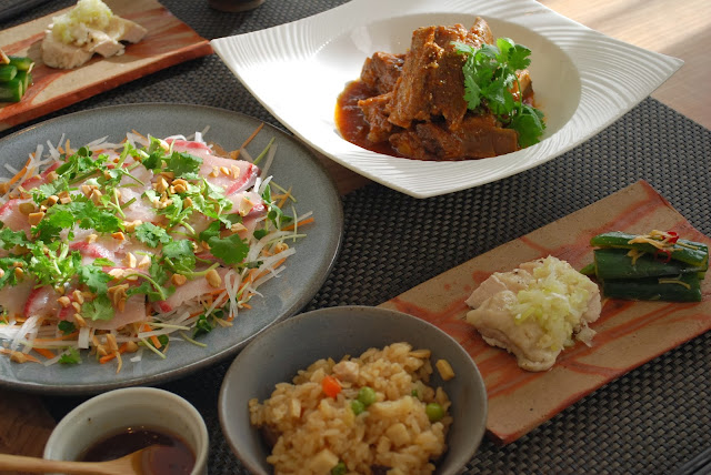 | インドカレー、鮪のカルパッチョ、タコのマリネ |